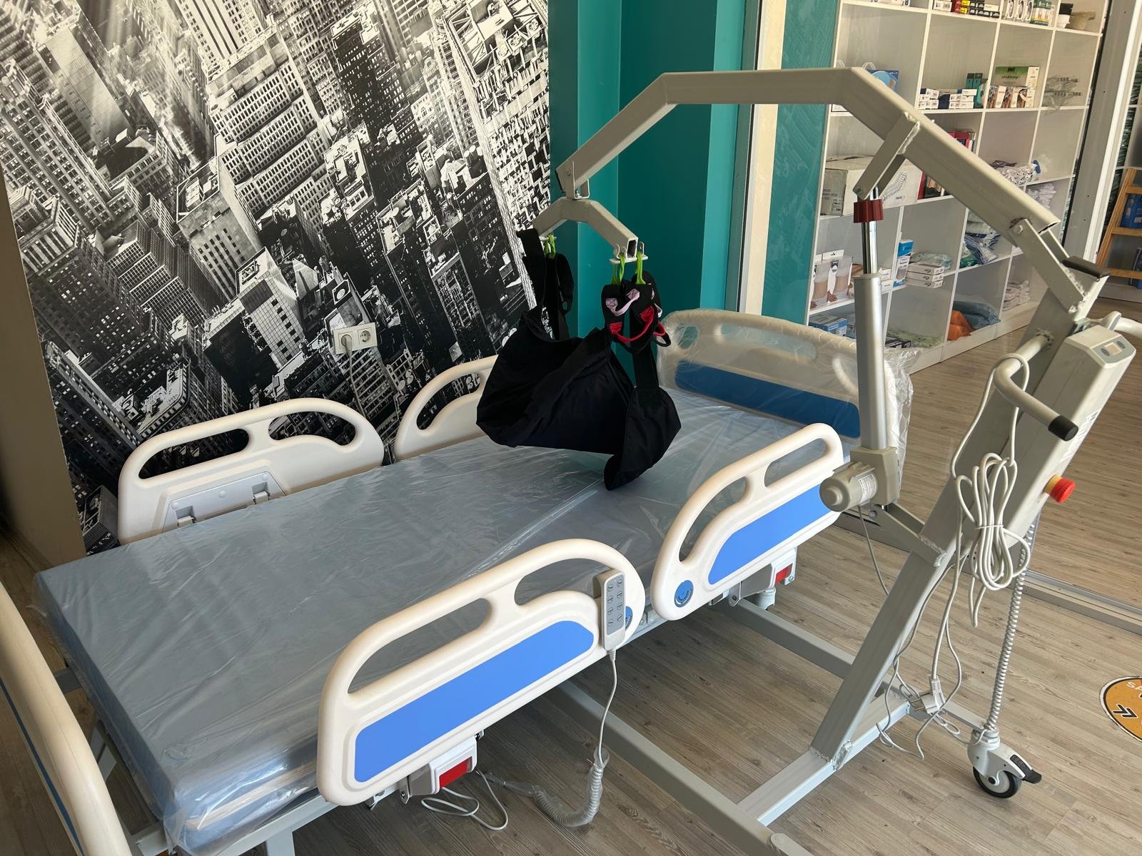 Elektrikli kaldırma mekanizması sayesinde hasta kaldırma ve indirme işlemleri son derece zahmetsizdir. Kalın naylon kumaştan üretilmiş taşıma askısı, ayarlanabilir ve çıkarılabilir yapıdadır. Alt bölümde yer alan 4 adet 3” kauçuk tekerlek sessiz ve pürüzsüz hareket sağlar; iki tanesi pedal frenlidir. 12V 5Ah kapasiteli pili, kesintisiz çalışma imkânı sunar.